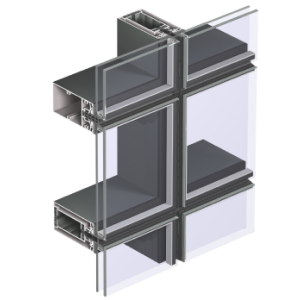 Это классическое оформление фасадов, которое не теряет своей актуальности в силу высочайшей степени надежности. Стоечно-ригельная система имеет конструкцию каркаса из продольных профилей – «стоек» и поперечных профилей – «ригелей». Листовое стекло, стеклопакеты или алюминиевые панели крепятся к каркасу снаружи при помощи прижимных планок, которые затем накрываются декоративными элементами – «капотами». Подобная система дает возможность применять различные способы утепления: использование многослойного остекления, уплотнителей, установку в профилях полиамидных изоляторов.