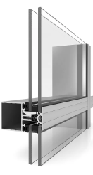 Это сочетание прочности стоечно-ригельных систем и презентабельности структурного остекления. В данном случае соединение стекла или стеклопакета с несущим профилем осуществляется тонкими прижимными штапиками, окантовывающими стекло по всему периметру и минимально перекрывающими его внешнюю поверхность. В отличие от структурной, такая система позволяет использовать большие по площади стеклопакеты и интегрировать в фасад открывающиеся элементы.